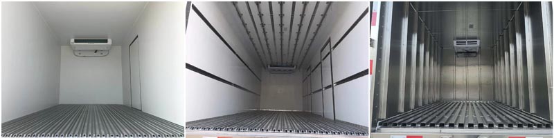 十 選裝配置:可選裝廂體側門(單側門或雙開門),可選裝鋁合金導風槽(導風槽有助于冷氣循環,提升制冷效果),可選裝廂體頂部加固肉勾滑道(直滑道 或 對接互通式拐彎滑道)。可選裝廂體內部采用全面不銹鋼材質(海鮮運輸必須加裝,海水有腐蝕性),可選裝280V-380V外接電源(停車熄火后可插電冷機繼續制冷工作),可選裝溫濕度監控記錄儀(帶打印功能)。
