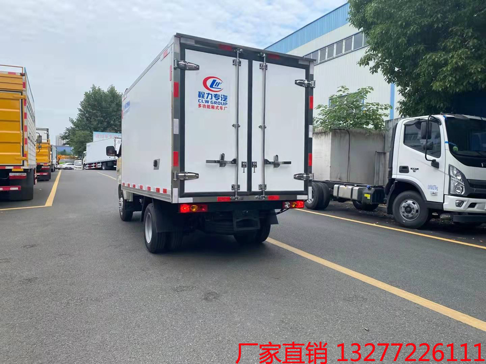 三、選裝配置:可選裝廂體側門(單側門或雙開門),可選裝鋁合金導風槽(導風槽有助于冷氣循環,提升制冷效果),可選裝廂體頂部加固肉勾滑道(直滑道 或 對接互通式拐彎滑道)??蛇x裝廂體內部采用全面不銹鋼材質(海鮮運輸必須加裝,海水有腐蝕性),可選裝280V-380V外接電源(停車熄火后可插電冷機繼續制冷工作),可選裝溫濕度監控記錄儀(帶打印功能)。