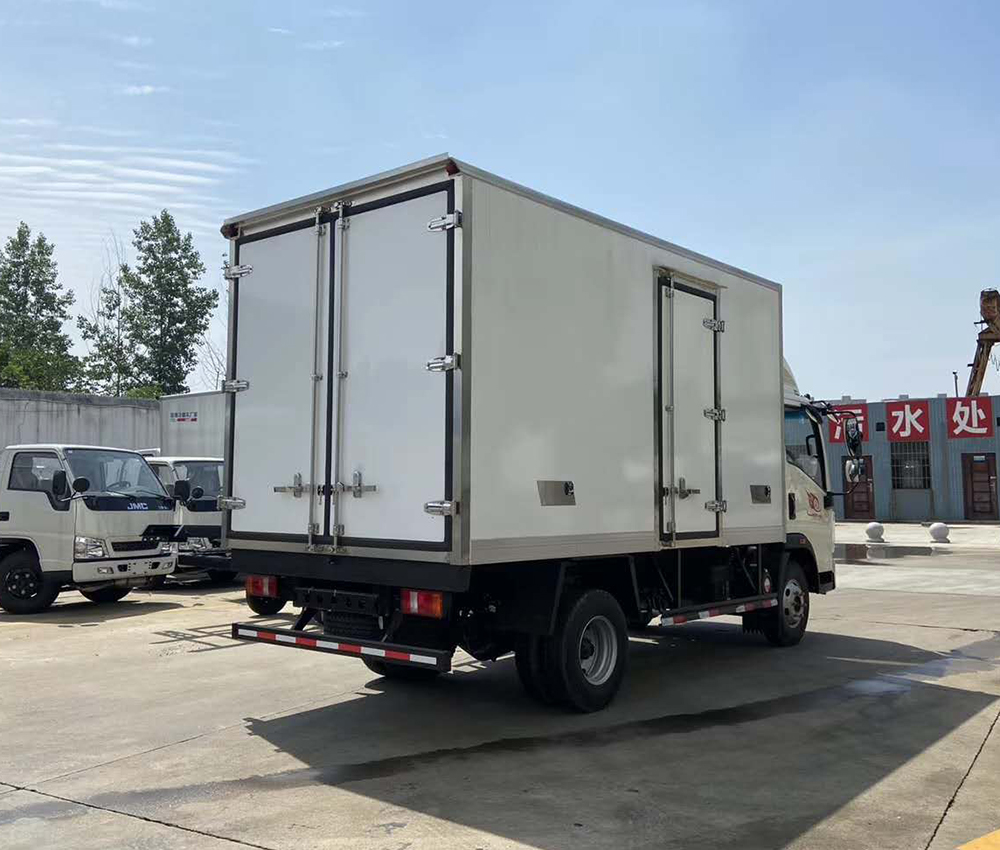 三、選裝配置:可選裝廂體側門(單側門或雙開門),可選裝鋁合金導風槽(導風槽有助于冷氣循環,提升制冷效果),可選裝廂體頂部加固肉勾滑道(直滑道 或 對接互通式拐彎滑道)。可選裝廂體內部采用全面不銹鋼材質(海鮮運輸必須加裝,海水有腐蝕性),可選裝280V-380V外接電源(停車熄火后可插電冷機繼續制冷工作),可選裝溫濕度監控記錄儀(帶打印功能)。
