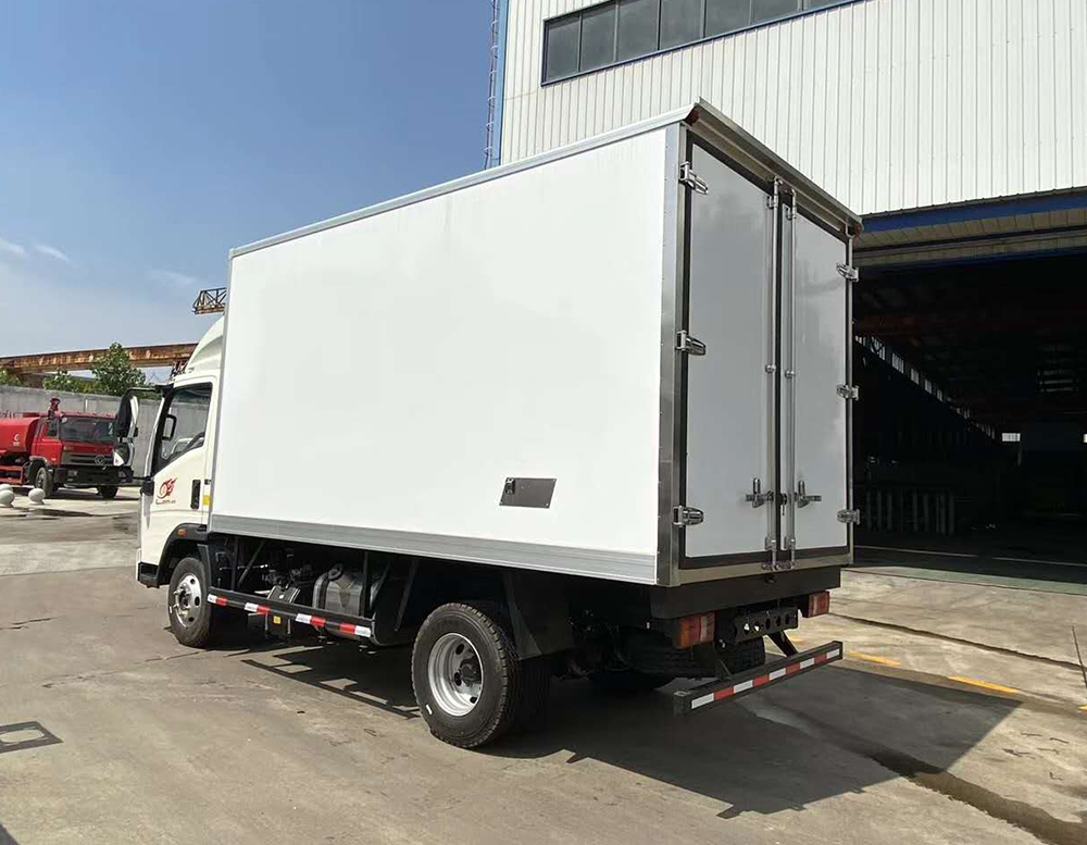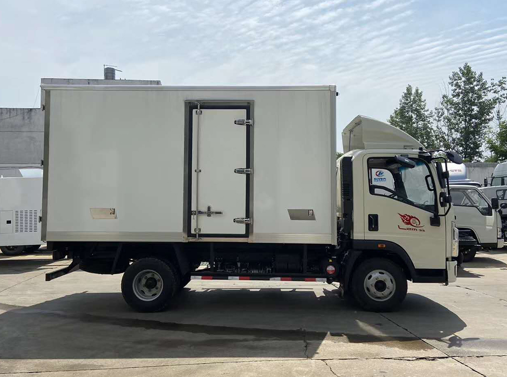 三、選裝配置:可選裝廂體側門(單側門或雙開門),可選裝鋁合金導風槽(導風槽有助于冷氣循環,提升制冷效果),可選裝廂體頂部加固肉勾滑道(直滑道 或 對接互通式拐彎滑道)??蛇x裝廂體內部采用全面不銹鋼材質(海鮮運輸必須加裝,海水有腐蝕性),可選裝280V-380V外接電源(停車熄火后可插電冷機繼續制冷工作),可選裝溫濕度監控記錄儀(帶打印功能)。