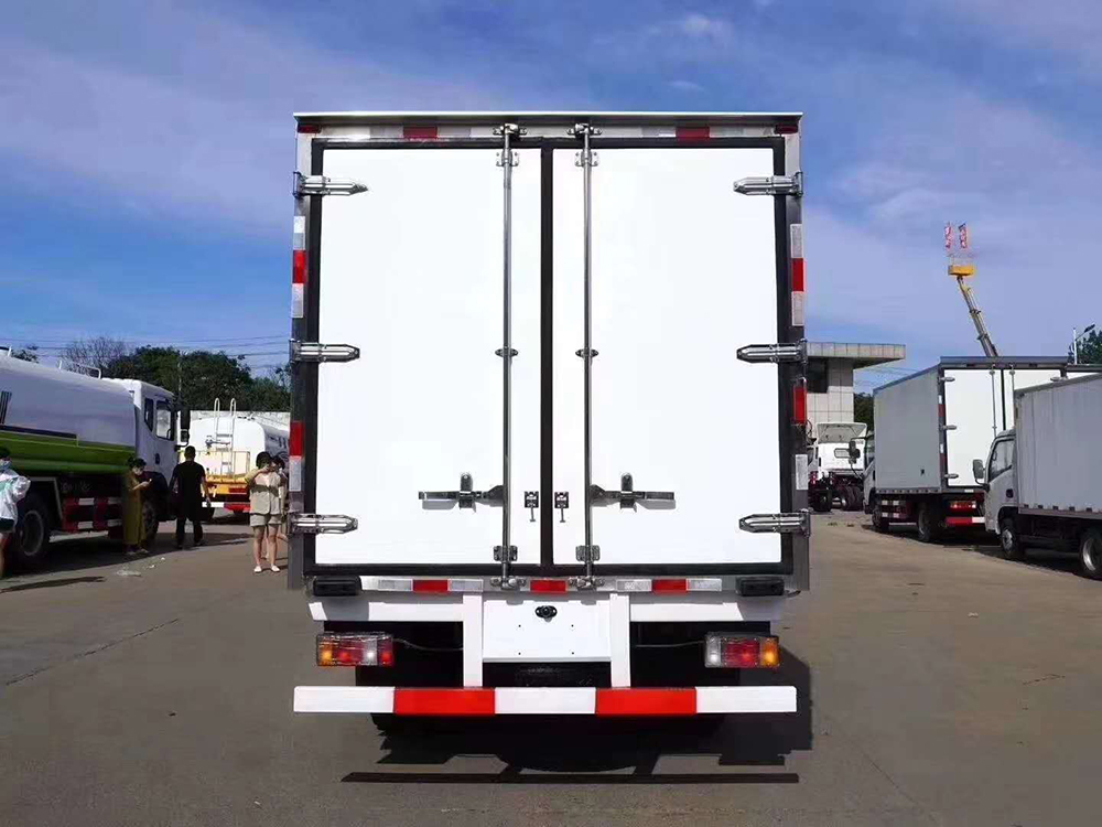 三、選裝配置:可選裝廂體側(cè)門(單側(cè)門或雙開(kāi)門),可選裝鋁合金導(dǎo)風(fēng)槽(導(dǎo)風(fēng)槽有助于冷氣循環(huán),提升制冷效果),可選裝廂體頂部加固肉勾滑道(直滑道 或 對(duì)接互通式拐彎滑道)。可選裝廂體內(nèi)部采用全面不銹鋼材質(zhì)(海鮮運(yùn)輸必須加裝,海水有腐蝕性),可選裝280V-380V外接電源(停車熄火后可插電冷機(jī)繼續(xù)制冷工作),可選裝溫濕度監(jiān)控記錄儀(帶打印功能)。