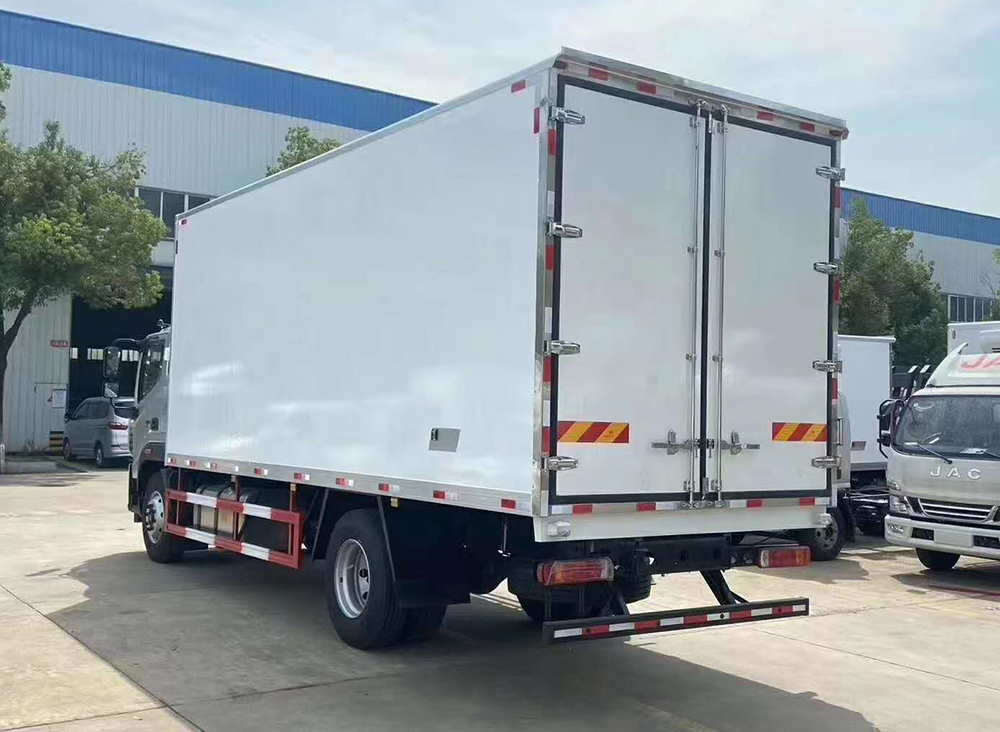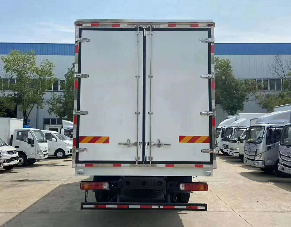 三、選裝配置:可選裝廂體側門(單側門或雙開門),可選裝鋁合金導風槽(導風槽有助于冷氣循環,提升制冷效果),可選裝廂體頂部加固肉勾滑道(直滑道 或 對接互通式拐彎滑道)。可選裝廂體內部采用全面不銹鋼材質(海鮮運輸必須加裝,海水有腐蝕性),可選裝280V-380V外接電源(停車熄火后可插電冷機繼續制冷工作),可選裝溫濕度監控記錄儀(帶打印功能)。