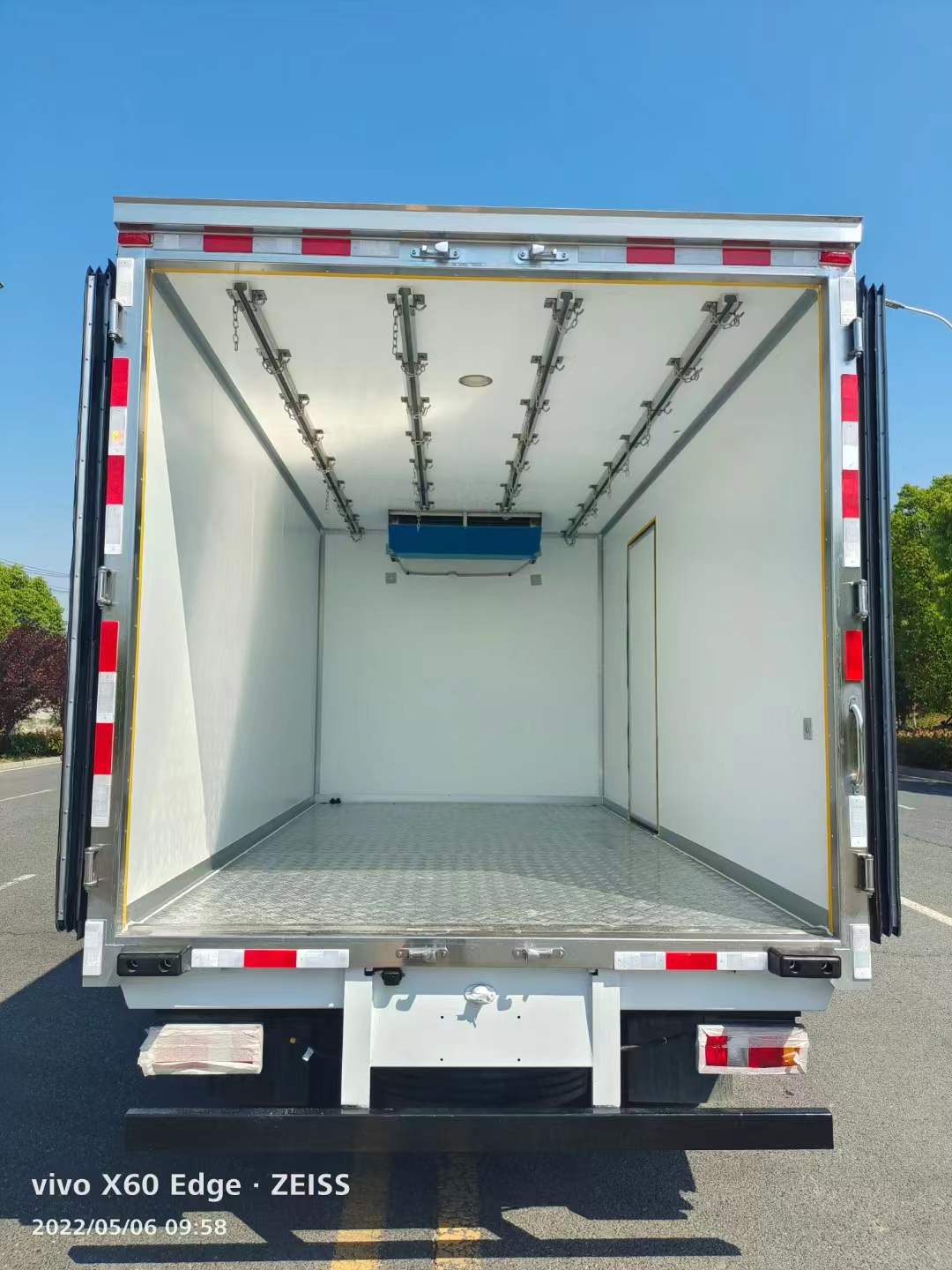 三、選裝配置:可選裝廂體側門(單側門或雙開門),可選裝鋁合金導風槽(導風槽有助于冷氣循環,提升制冷效果),可選裝廂體頂部加固肉勾滑道(直滑道 或 對接互通式拐彎滑道)??蛇x裝廂體內部采用全面不銹鋼材質(海鮮運輸必須加裝,海水有腐蝕性),可選裝280V-380V外接電源(停車熄火后可插電冷機繼續制冷工作),可選裝溫濕度監控記錄儀(帶打印功能)。
