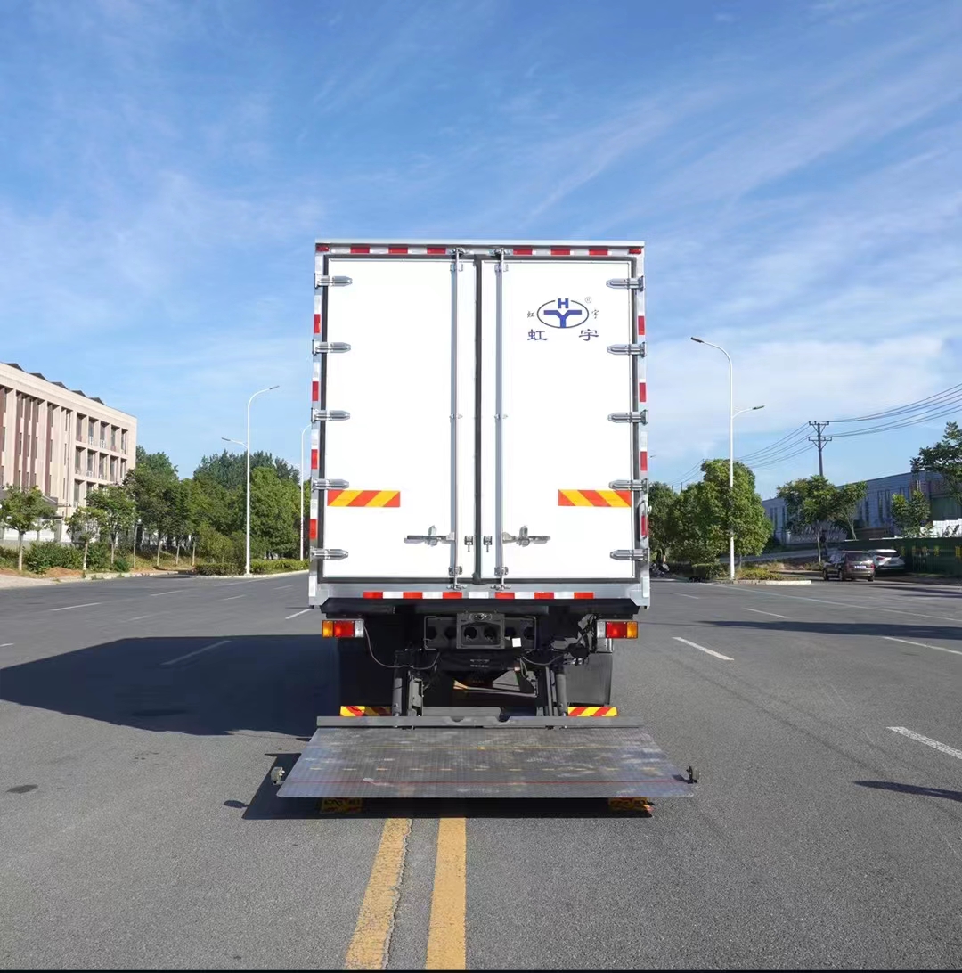 三、選裝配置:可選裝廂體側門(單側門或雙開門),可選裝鋁合金導風槽(導風槽有助于冷氣循環,提升制冷效果),可選裝廂體頂部加固肉勾滑道(直滑道 或 對接互通式拐彎滑道)。可選裝廂體內部采用全面不銹鋼材質(海鮮運輸必須加裝,海水有腐蝕性),可選裝280V-380V外接電源(停車熄火后可插電冷機繼續制冷工作),可選裝溫濕度監控記錄儀(帶打印功能)。
